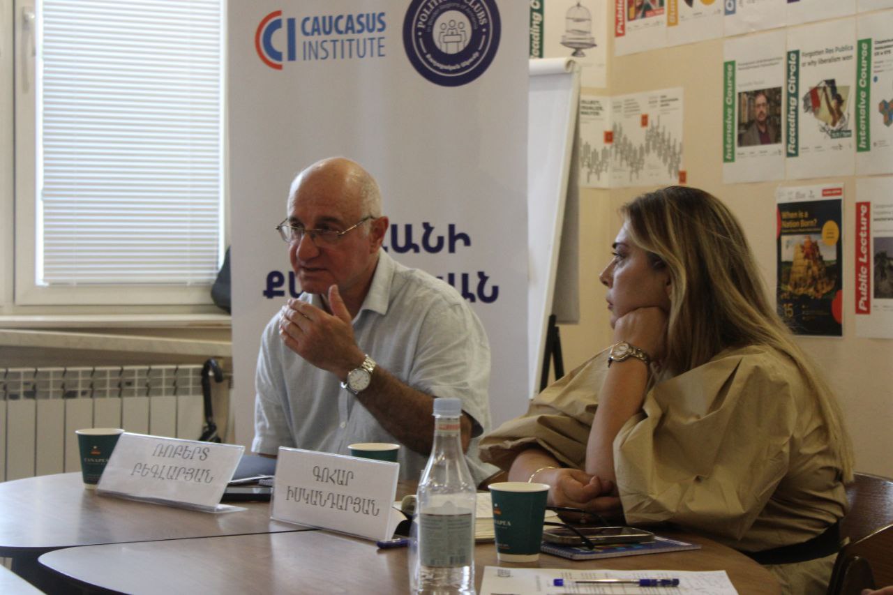 Սեպտեմբերի 11-ին Կովկասի ինստիտուտի հովանու ներքո տեղի ունեցավ Երևանի քաղաքական ակումբի յոթերորդ քննարկումը, որի շրջանակում բանախոսեցին՝ ՀՀ ԳԱԱ Արևելագիտության ինստիտուտի տնօրեն, պատմական գիտությունների թեկնածու, դոցենտ Գոհար Իսկանդարյանը և Իրանի խորհրդարանի նախկին պատգամավոր, ՀՀ ԳԱԱ արևելագիտության ինստիտուտի ասպիրանտ Ռոբերտ Բեգլարյանը: