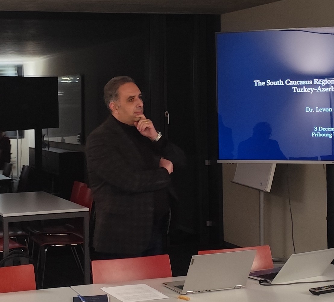 Head of the Department of Turkey of the Institute of Oriental Studies, National Academy of Sciences of Armenia, Associate Professor, Dr. Levon Hovsepyan and Senior Researcher of the Department of Iran, Associate Professor, Dr. Artyom Tonoyan delivered lectures at the University of Fribourg in Switzerland and participated in a workshop on 2-4 December at the invitation of Professor Ansgar Jödicke of the Department of Social Sciences of the University of Fribourg. L. Hovsepyan’s lecture focused on the impact and role of the Turkish-Azerbaijani military-political cooperation within the security complex of the South Caucasus, the growing Turkish influence in Azerbaijan’s security apparatus, and the resulting regional security challenges. A. Tonoyan’s lecture was dedicated to the issues of cultural heritage in the contemporary Iranian-Azerbaijani relations and to the tendencies of “Azerbaijanization” of Iran’s tangible and intangible cultural layers. The speakers also participated as main presenters in the workshop titled “Religion and Culture as a Factor in Domestic and Foreign Policy”, where they delivered reports on the role of Islam in the domestic and foreign policy of contemporary Turkey, as well as on the concept of “cultural heritage” in Azerbaijan’s propaganda policy toward Armenia in the post-war period. The workshop addressed issues related to Azerbaijani nation-building, memory politics, identity, and irredentist narratives.